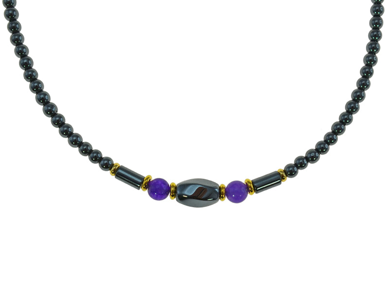 Iron Ore necklace with Amethyst beads and small gold spacers.