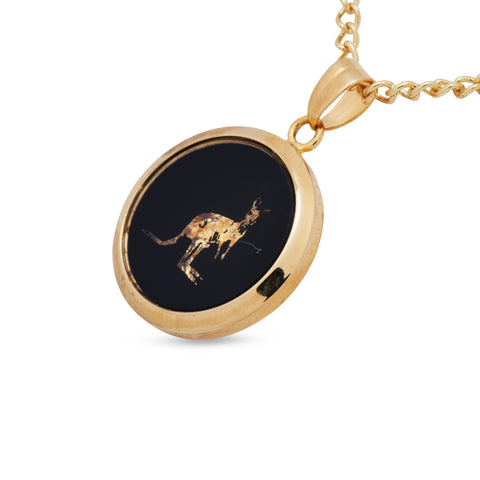 Gold Plated Kangaroo Pendant containing 999.9 pure gold. The pendant has a 22 karat gold plated bale and is supplied with a 22 karat 45 cm gold plated chain.